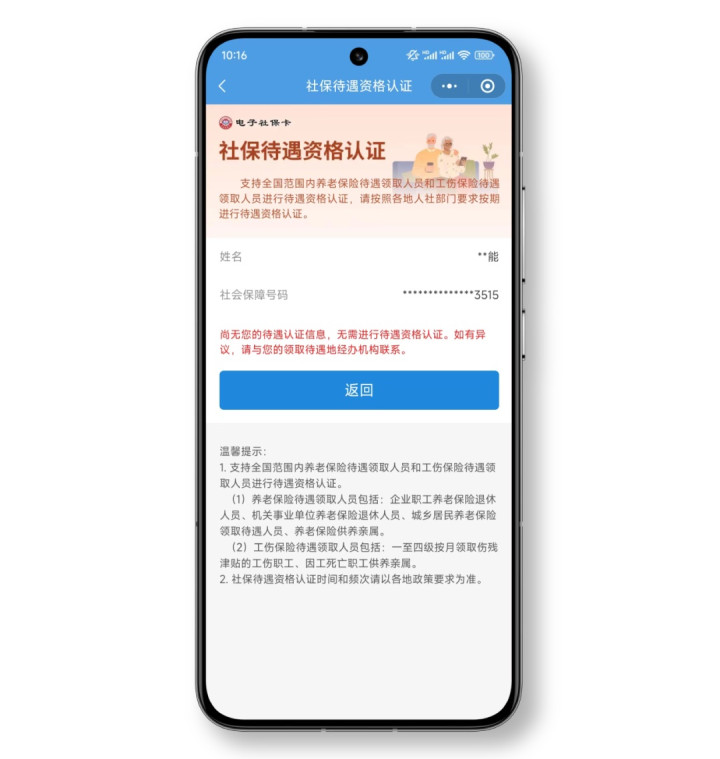 输入电子社保卡密码后,即可进入社保待遇资格认证界面。